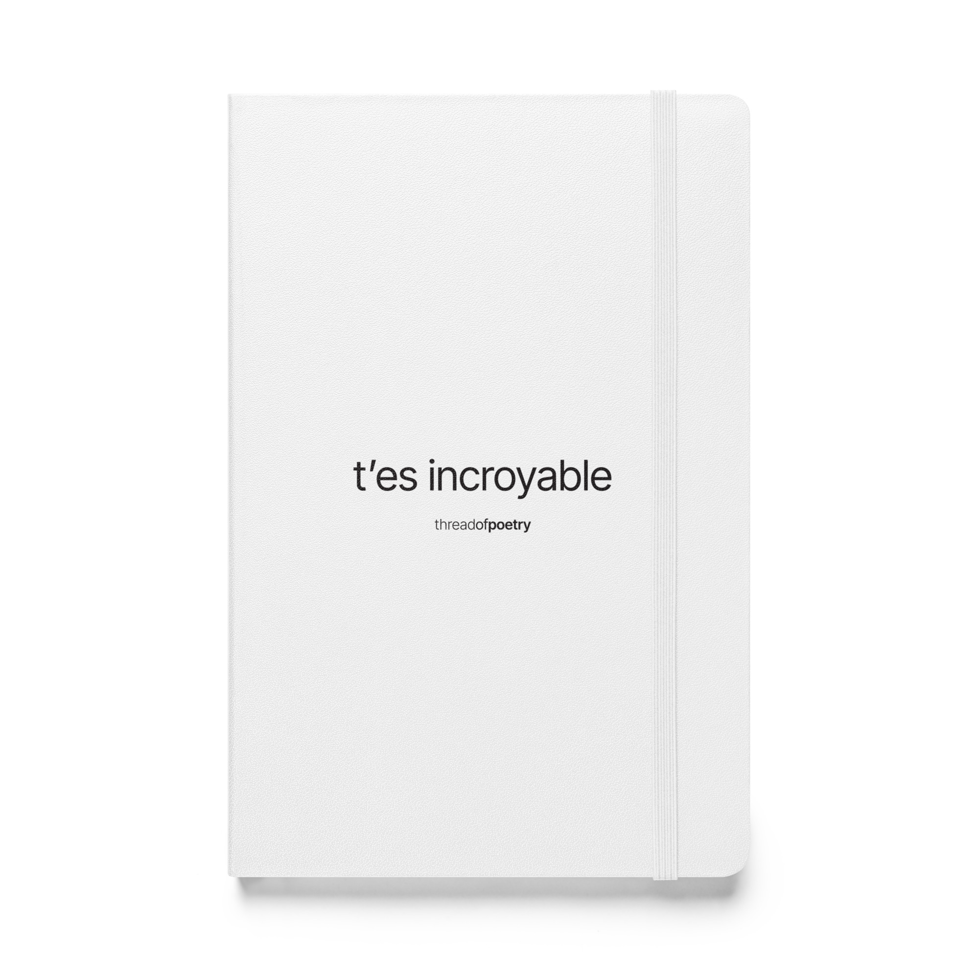 Carnet blanc « t’es incroyable » avec 80 pages lignées crème, couverture rigide, élastique de fermeture, ruban signet et poche intérieure, parfait pour écrire, noter ou journaliser.